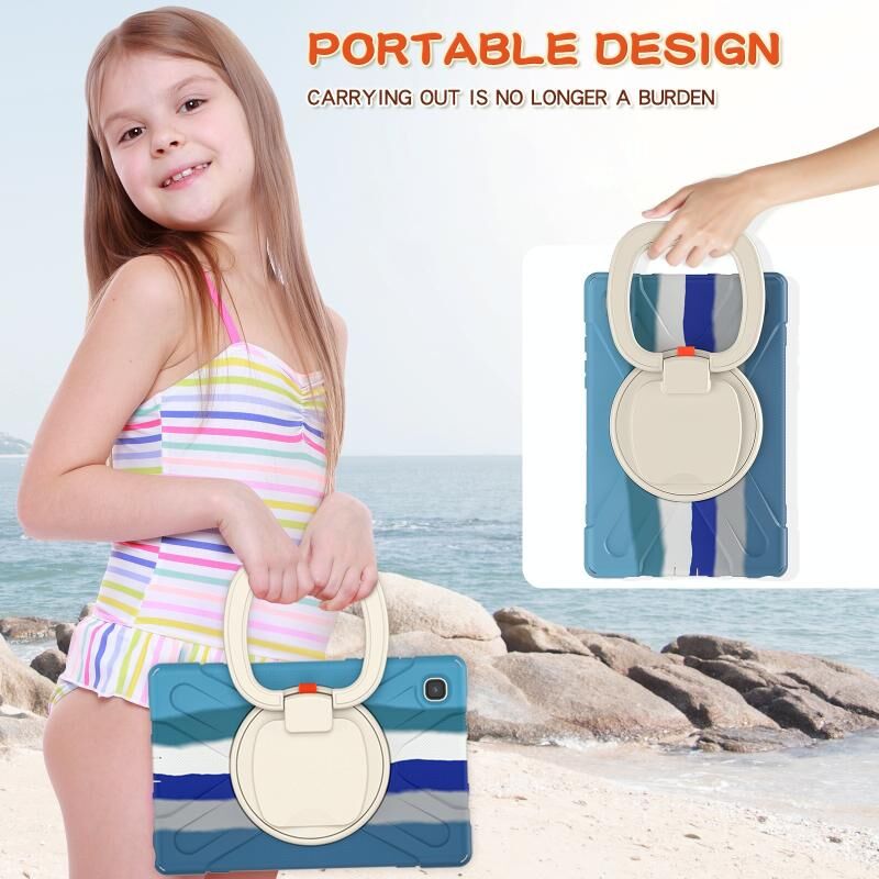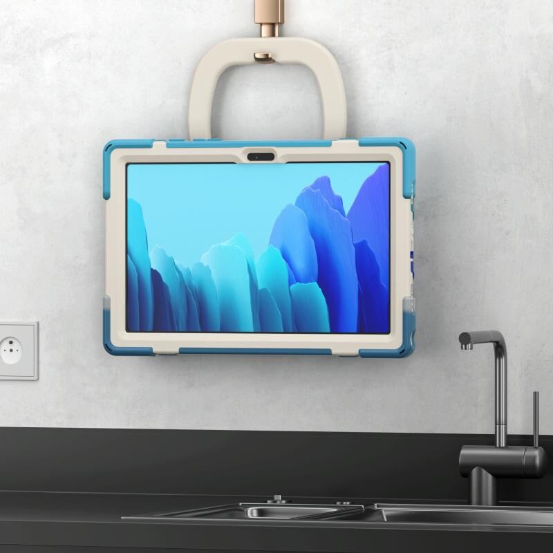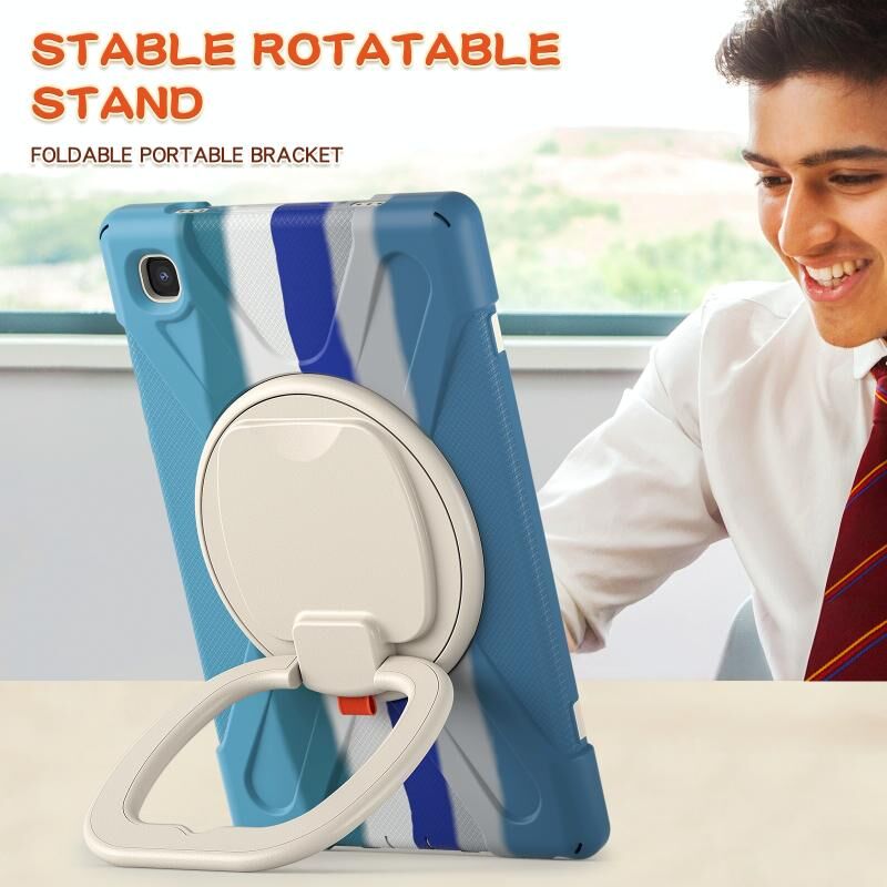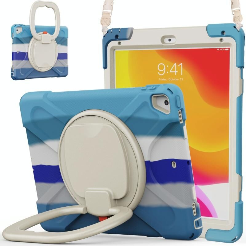 For iPad 9.7 inch (2018/2017) Silicone + PC Protective Case with Holder & Shoulder Strap(Colorful Blue)