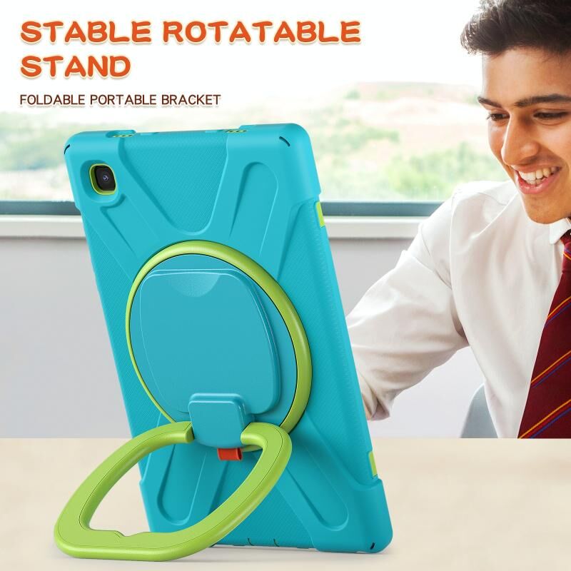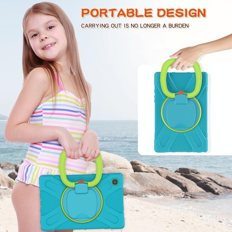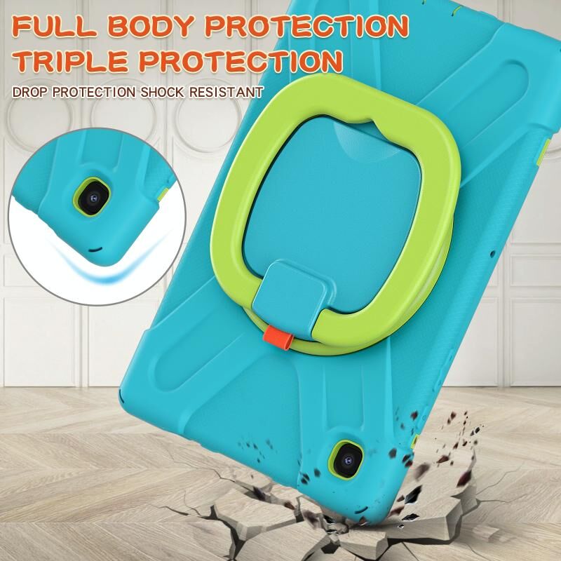 For iPad 9.7 inch (2018/2017) Silicone + PC Protective Case with Holder & Shoulder Strap(Light blue+Yellow Green)