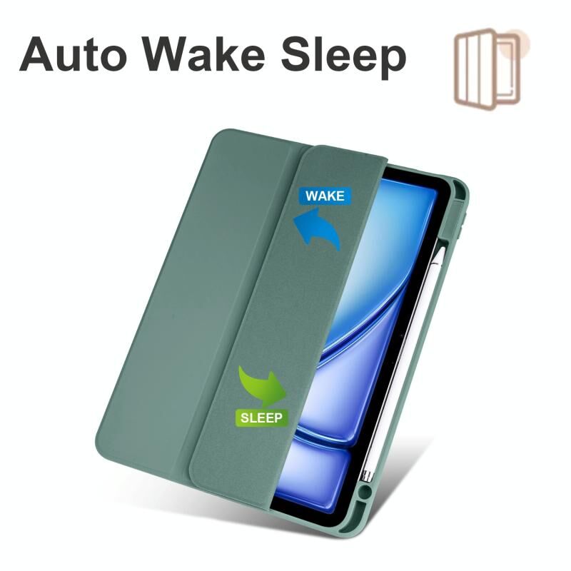 Θήκη Tablet από Ακρυλικό Δέρμα με 3 Διπλώσεις για iPad Air 11 2024 / 2025 (Σκούρο Πράσινο)