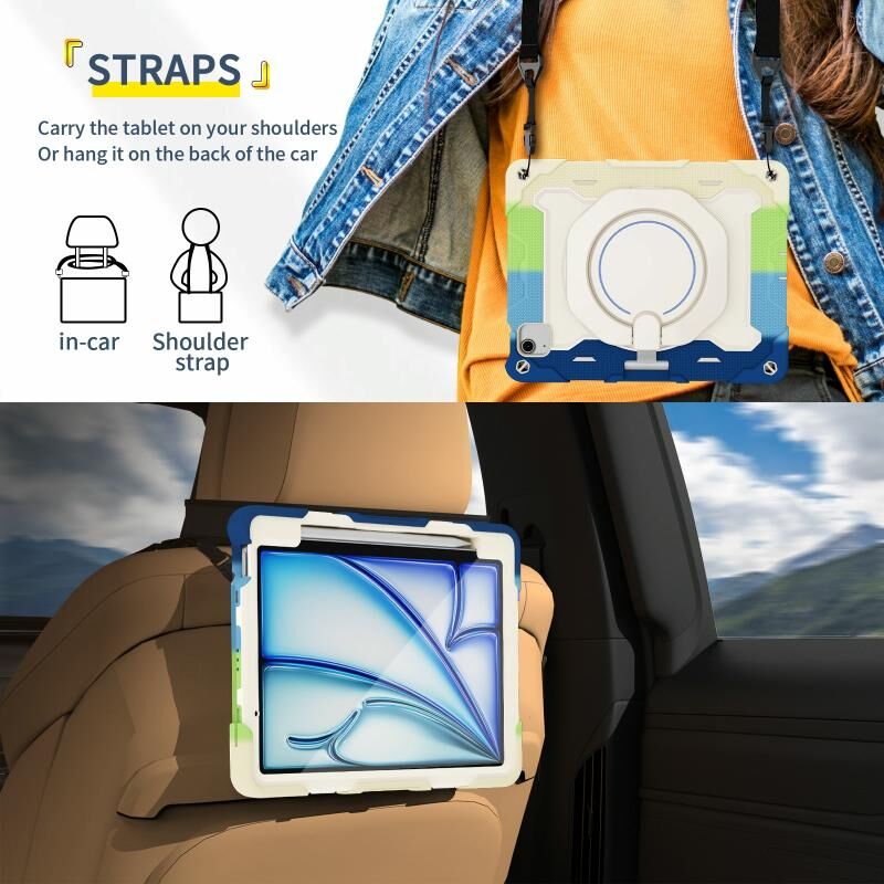 Για iPad Air 11 2024 / 2025 Armor Φορητό περιστρεφόμενο δαχτυλίδι κάτοχος σιλικόνης θήκη tablet με υποδοχή στυλό (πολύχρωμο μπλε)