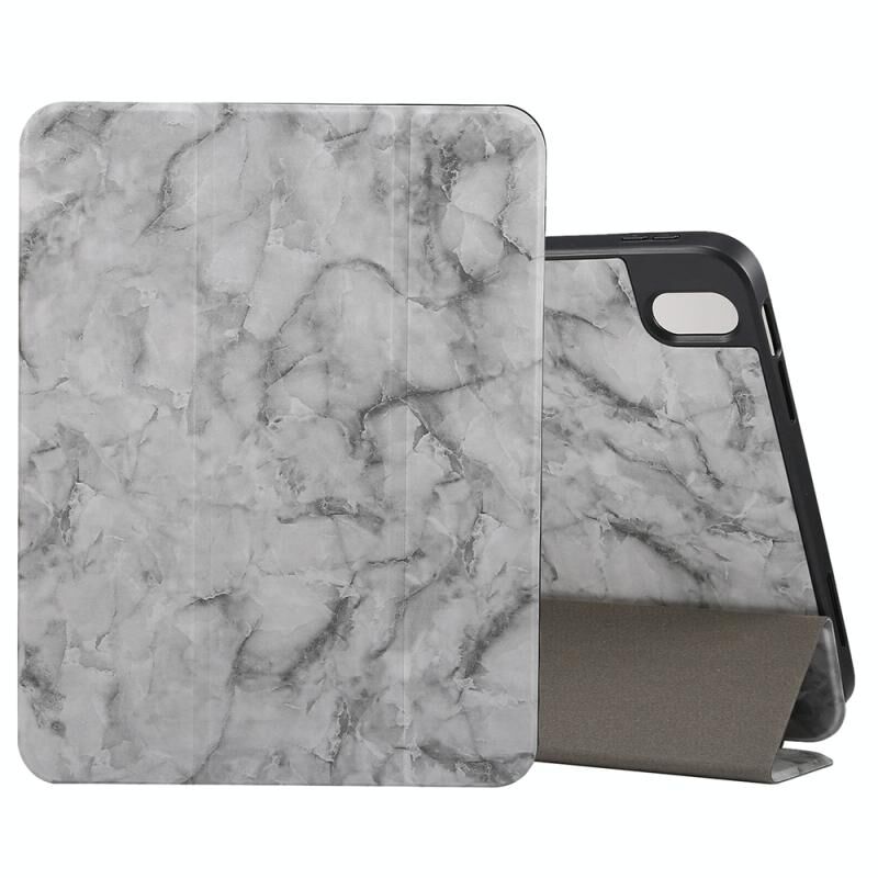 Θήκη Προστασίας Tablet Τριπλής Δίπλωσης με Υφή Μαρμάρου για iPad Air 11 2024 / 2025 με Θήκη Στυλό (Μαύρο Γκρι)