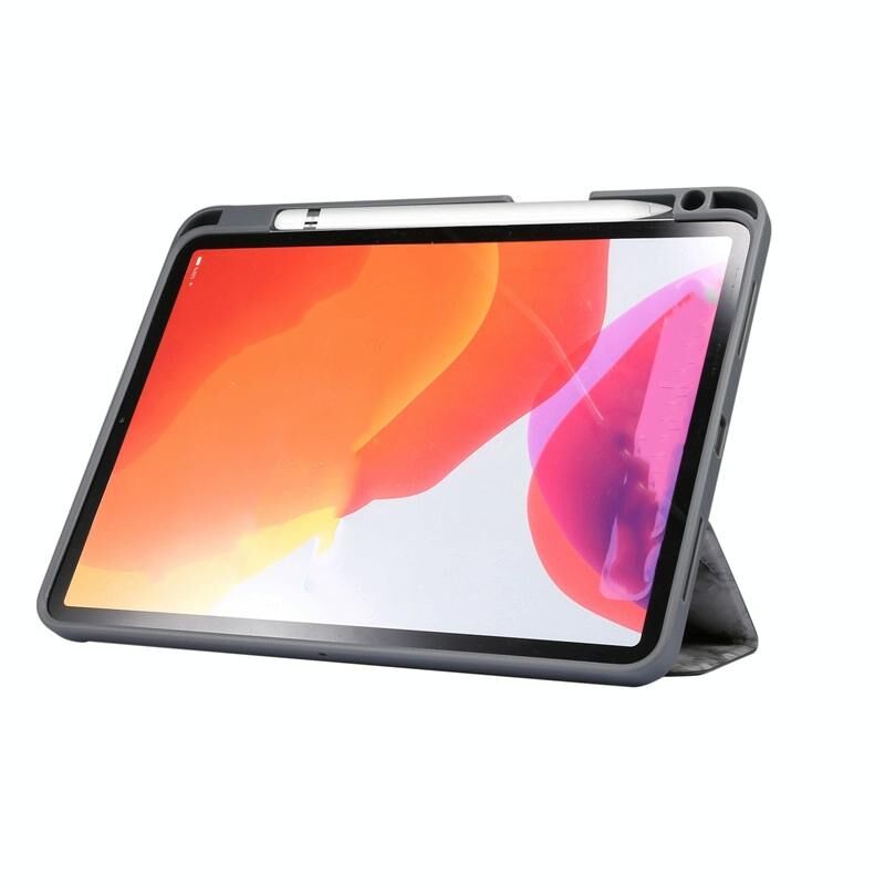Θήκη Προστασίας Tablet Τριπλής Δίπλωσης με Υφή Μαρμάρου για iPad Air 11 2024 / 2025 με Θήκη Στυλό (Μαύρο Γκρι)