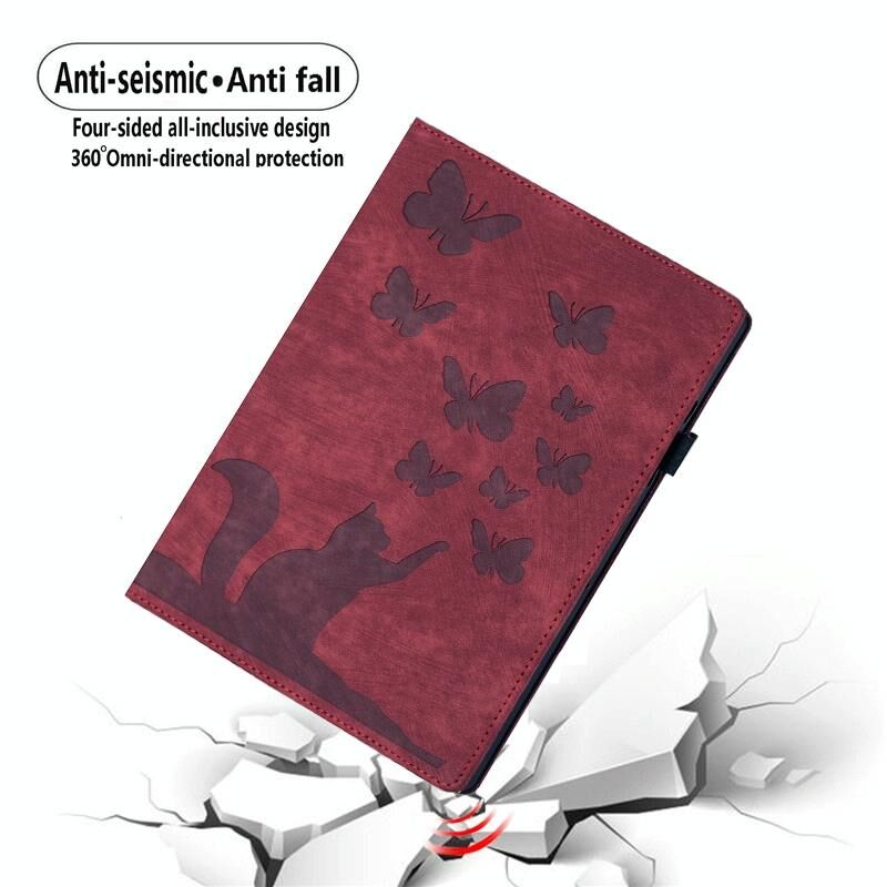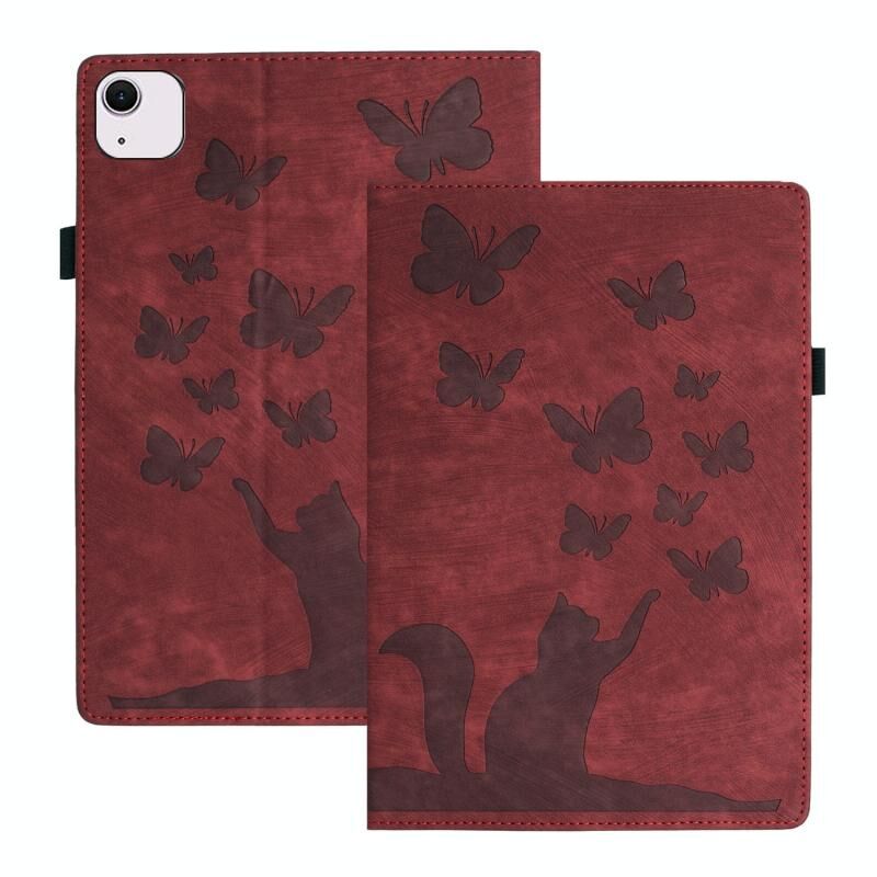 For iPad Air 11 2024 / Air 11 2025 Butterfly Cat Embossing Leather Tablet Case(Red)