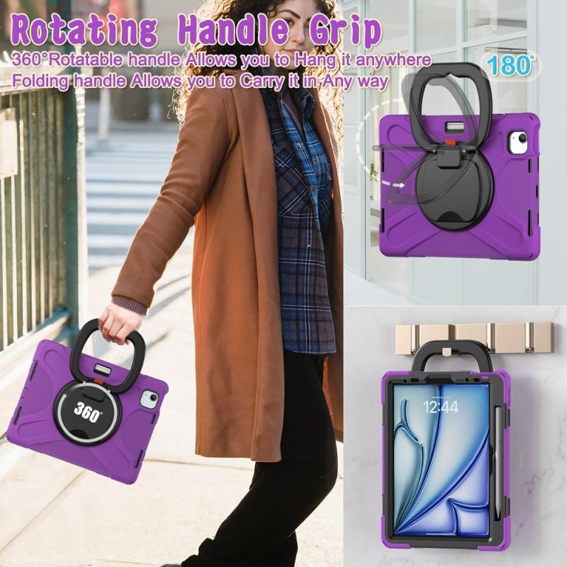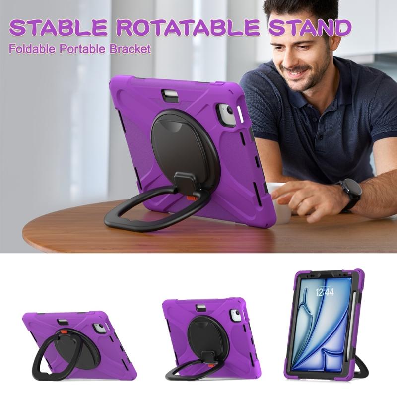 For iPad Air 11 2024 / Air 11 2025 Silicone Hybrid PC Tablet Case with Holder & Shoulder Strap(Purple)