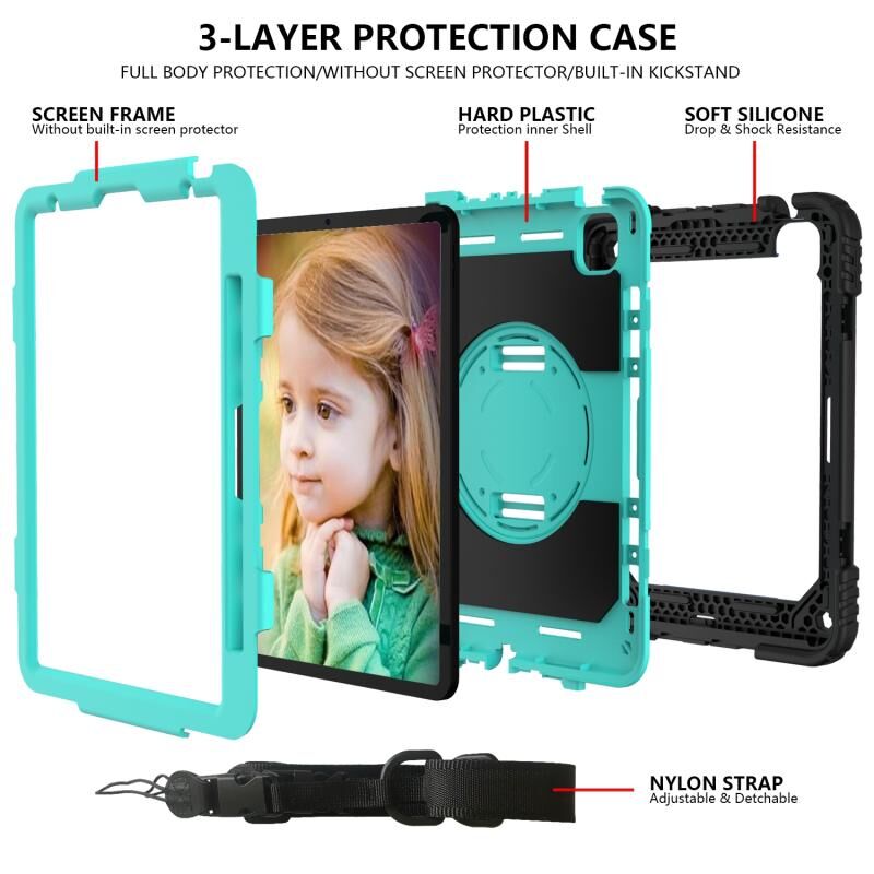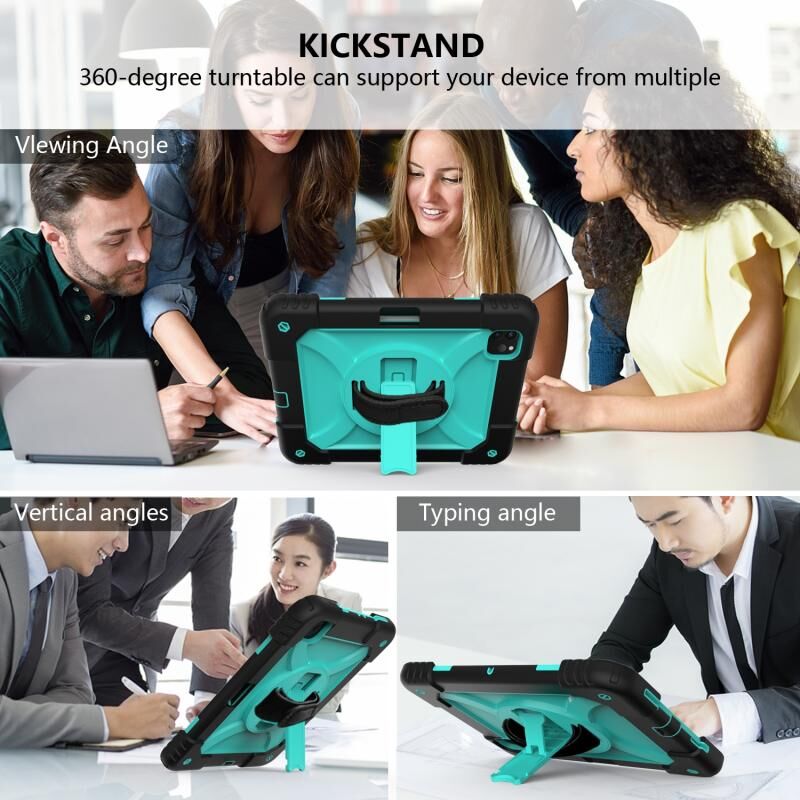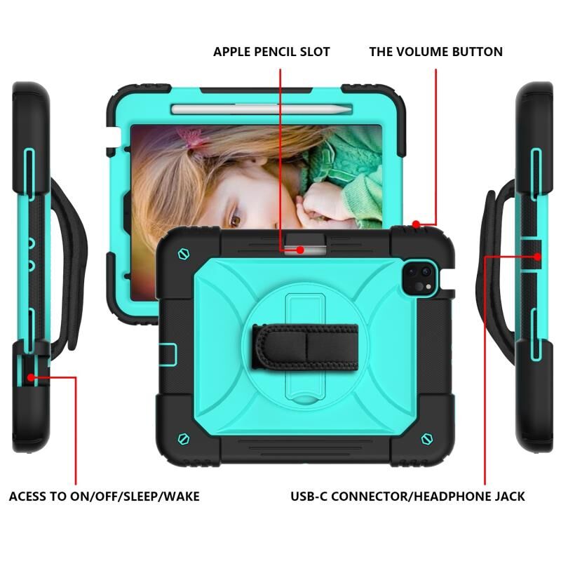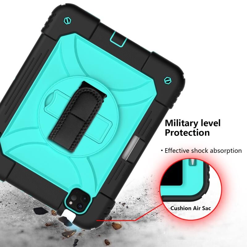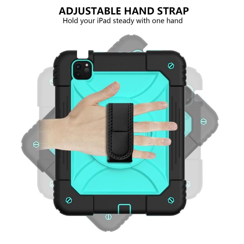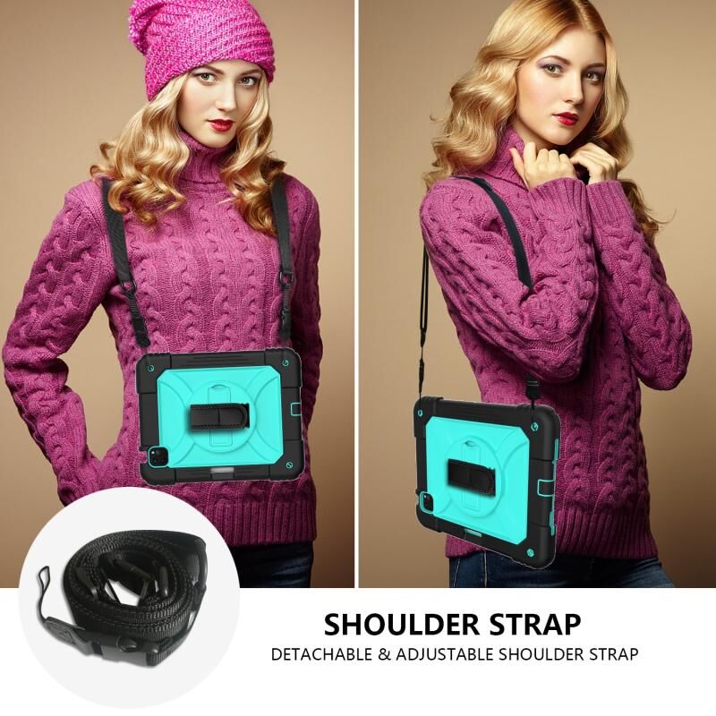 Για iPad Air 11 2024 / Air 2022 / 2020 10.9 / Air 2022 Ανθεκτική θήκη συνδυασμού PC + Σιλικόνης με βάση στήριξης & Λουρί χειρός & Λουρί ώμου (Μέντα πράσινο + Ροζ κόκκινο)
