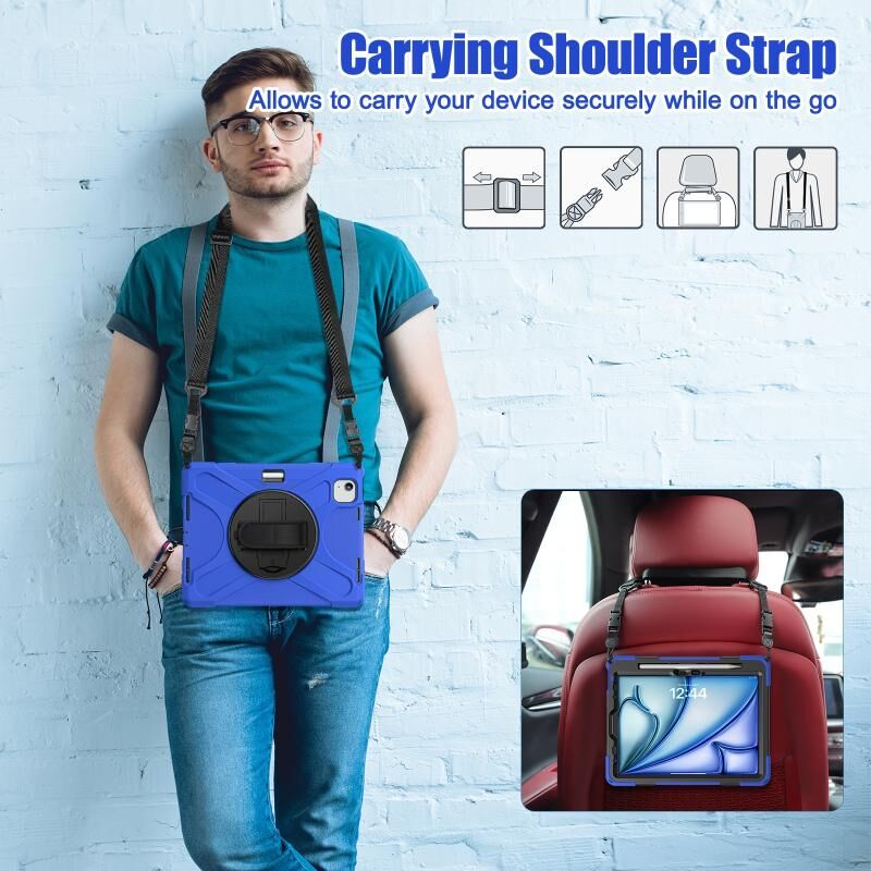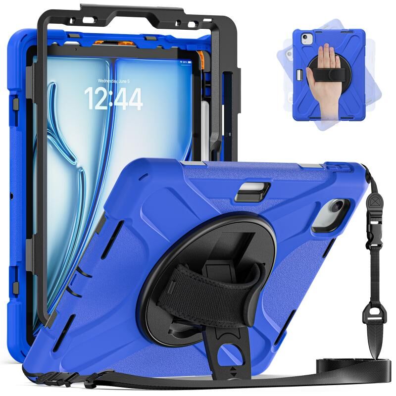 For iPad Air 11 2024 / Air 5 10.9 2022 / Air 4 10.9 2020 / Pro 11 2022 /2021 / 2018 / 2020 Silicone + PC Protective Tablet Case with Holder & Shoulder Strap(Blue)