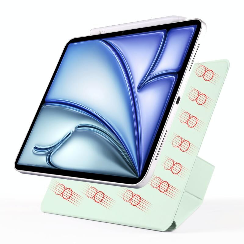 3. Ισχυρός Μαγνήτης: Ένας μαγνήτης περιλαμβάνεται με τη θήκη, προσφέροντας ισχυρό μαγνητισμό και υποστήριξη πολλαπλών γωνιών για την εργασία ή την ψυχαγωγία σας.