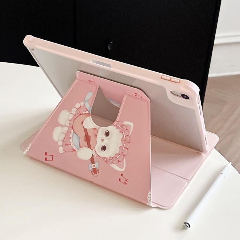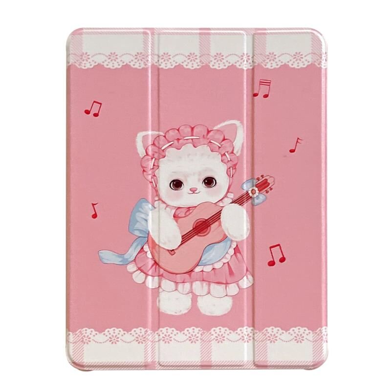 For iPad Air 11 2025 / 2024 3-Fold 360 Rotation Painted Leather Smart Tablet Case(Guitar Cat)