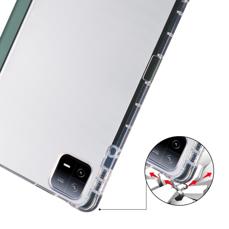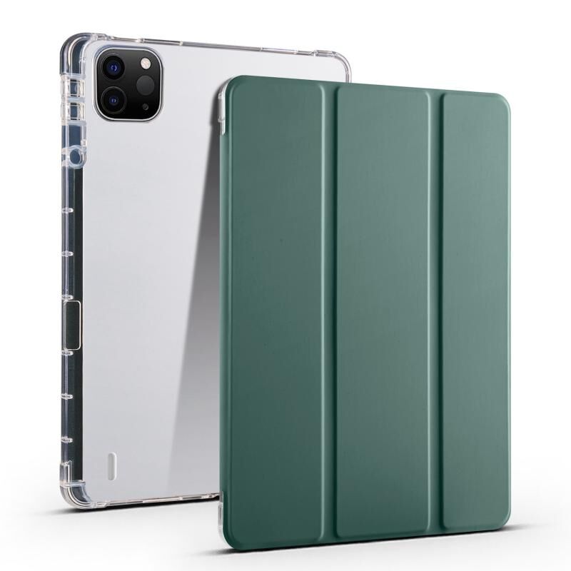 For iPad Air 11 2025 / 2024 3-fold Clear TPU Smart Leather Tablet Case with Pen Slot(Dark Green)