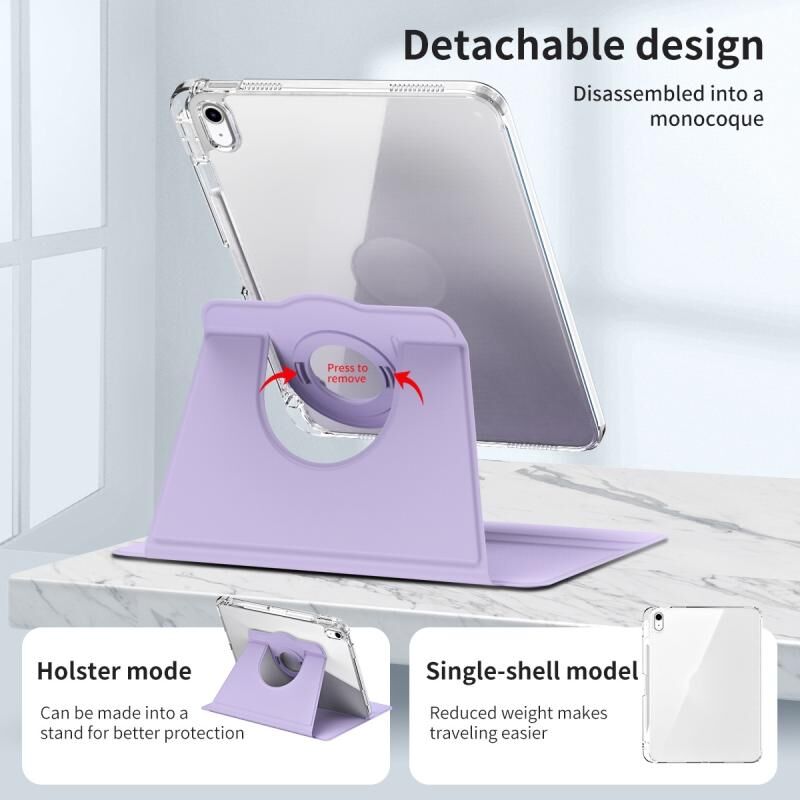 Θήκη Tablet για iPad Air 11 2025 / 2024, περιστρεφόμενη 360 μοιρών, αποσπώμενη, από διαφανές ακρυλικό και δέρμα (Γαλάζιο του Πάγου)
