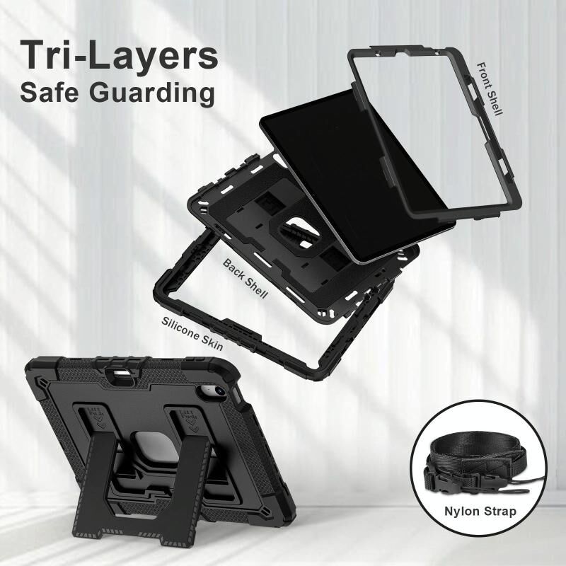 For iPad Air 11 2025 / 2024 Big Holder Silicone Hydric PC Tablet Case with Shoulder Strap(Black)