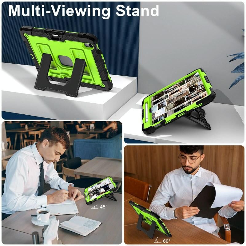 For iPad Air 11 2025 / 2024 Big Holder Silicone Hydric PC Tablet Case with Shoulder Strap(Black Olivine)