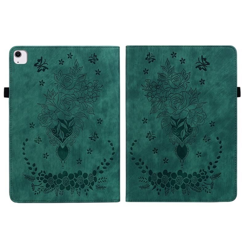 For iPad Air 11 2025 / 2024 Butterfly Rose Embossed Leather Smart Tablet Case(Green)
