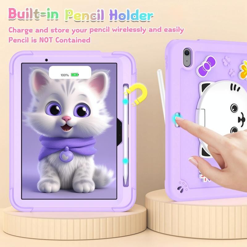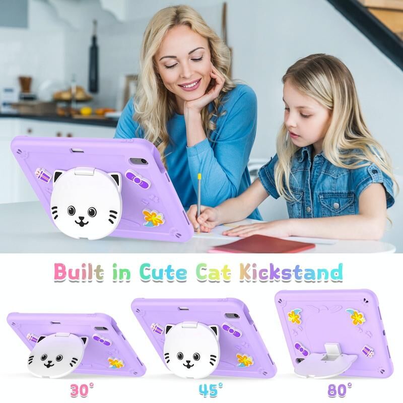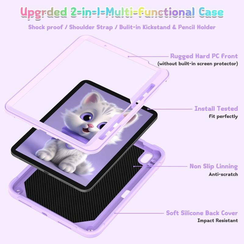 For iPad Air 11 2025 / 2024 Cat Holder Silicone Hybrid PC Tablet Case with Strap(Purple)