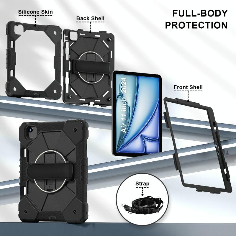 For iPad Air 11 2025 / 2024 Contrast Color Robot Silicone Hybrid PC Tablet Case(Black)