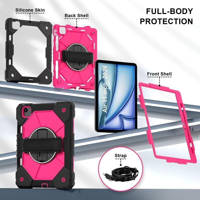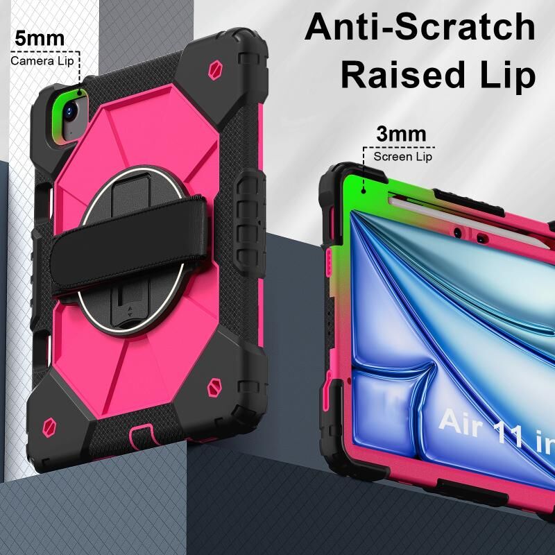 For iPad Air 11 2025 / 2024 Contrast Color Robot Silicone Hybrid PC Tablet Case(Black Rose Red)