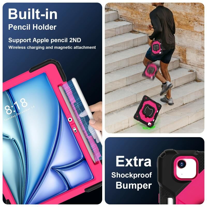 For iPad Air 11 2025 / 2024 Contrast Color Robot Silicone Hybrid PC Tablet Case(Black Rose Red)
