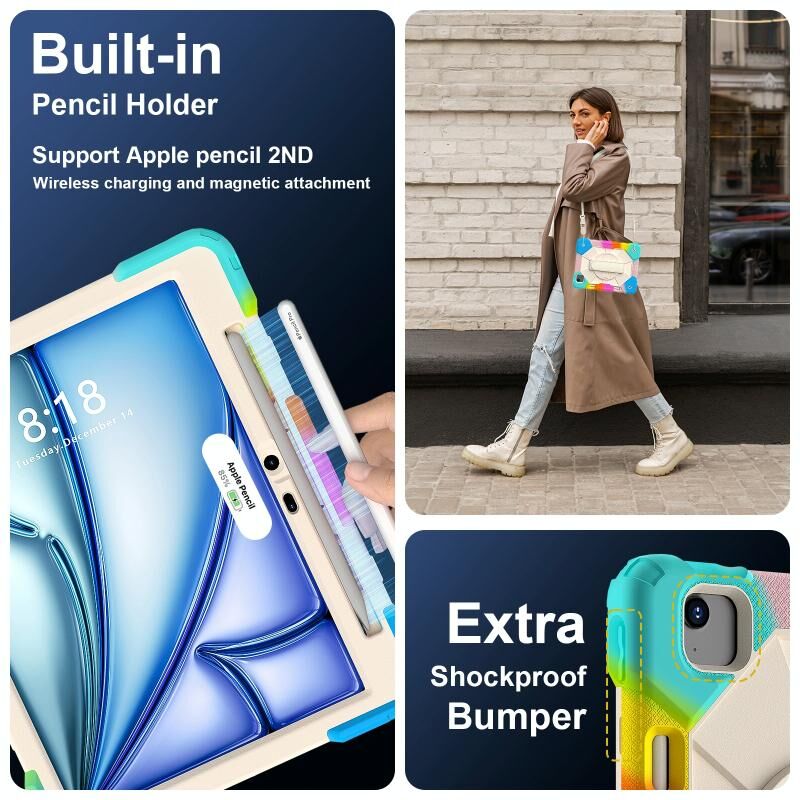 For iPad Air 11 2025 / 2024 Contrast Color Robot Silicone Hybrid PC Tablet Case(Colorful Blue)