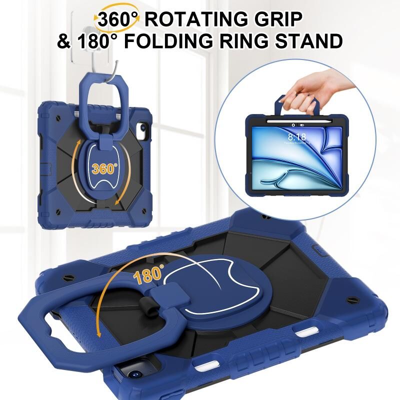 For iPad Air 11 2025 / 2024 Contrast Color Robot Silicone Hybrid PC Tablet Case(Navy Black)