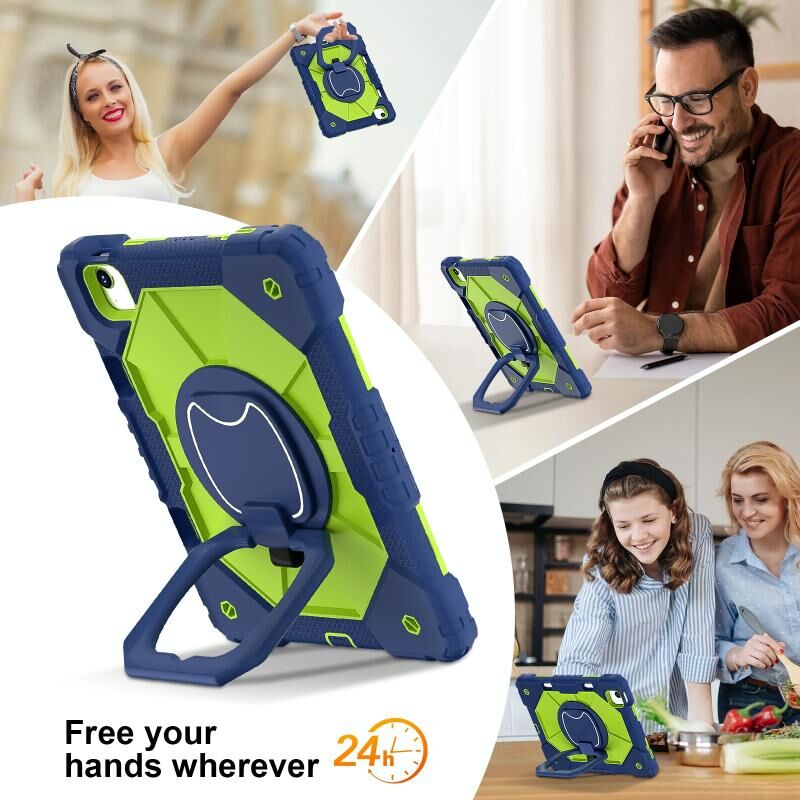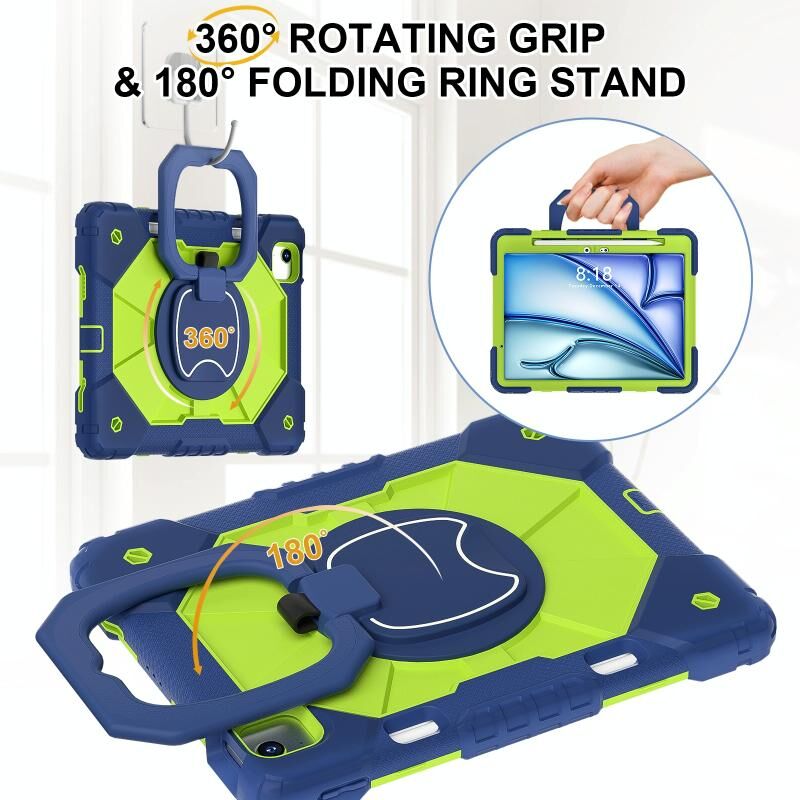 For iPad Air 11 2025 / 2024 Contrast Color Robot Silicone Hybrid PC Tablet Case(Navy Yellow Green)
