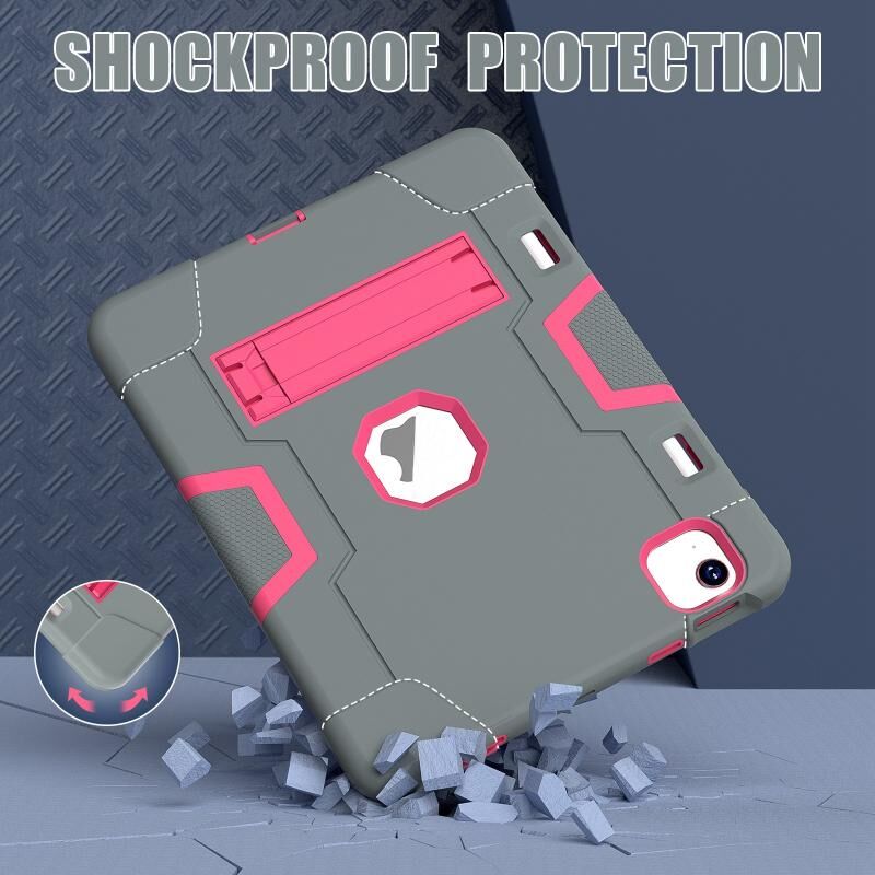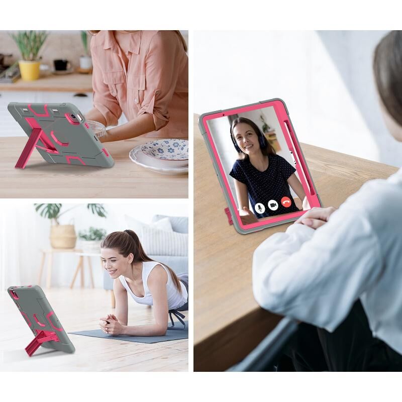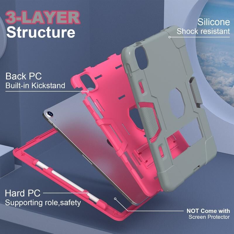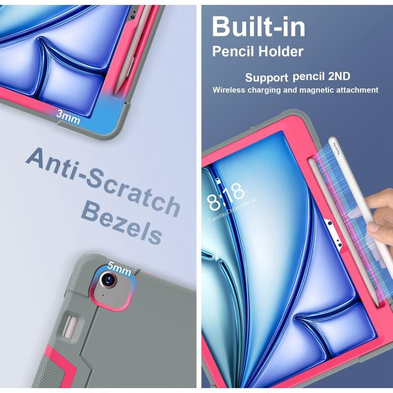 Θήκη tablet για iPad Air 11 2025 / 2024 με ενσωματωμένη βάση στήριξης, σε συνδυασμό χρωμάτων σιλικόνης, ακρυλικού και PC (Μέντα πράσινο, Κόκκινο τριαντάφυλλο)