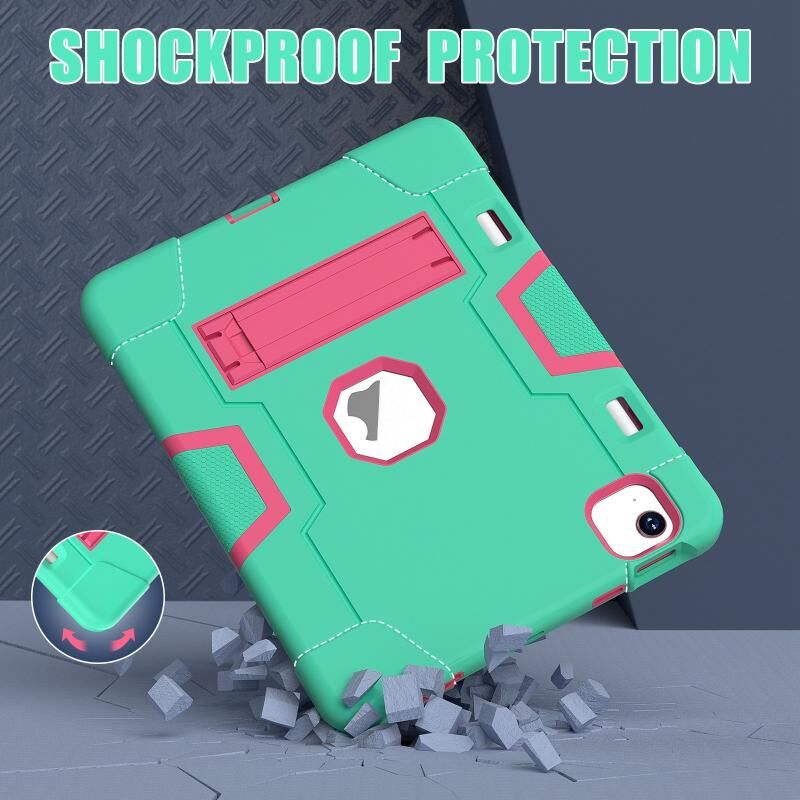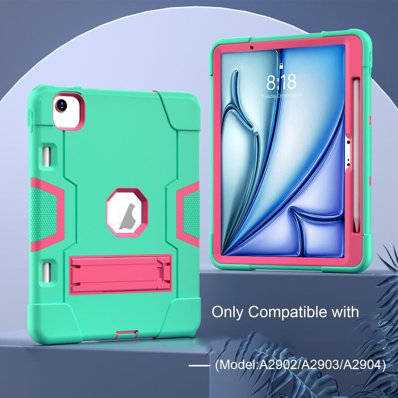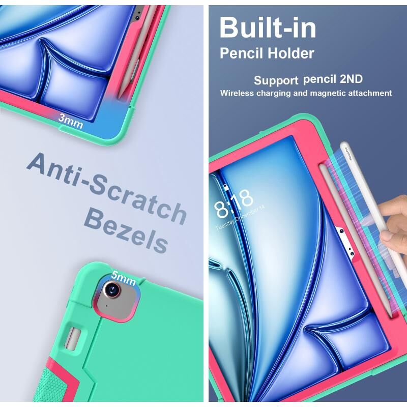 Θήκη tablet για iPad Air 11 2025 / 2024 με ενσωματωμένη βάση στήριξης, σε συνδυασμό χρωμάτων σιλικόνης, ακρυλικού και PC (Μέντα πράσινο, Κόκκινο τριαντάφυλλο)