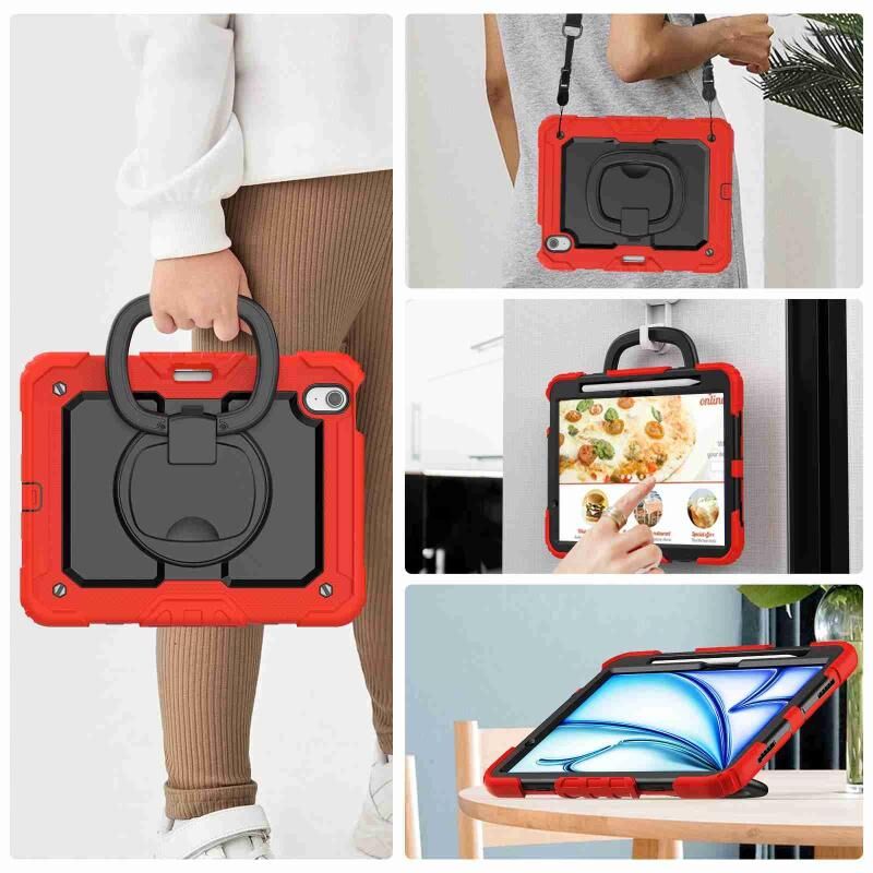 For iPad Air 11 2025 / 2024 Handle Silicone Hydric PC Tablet Case with Shoulder Strap(Red)
