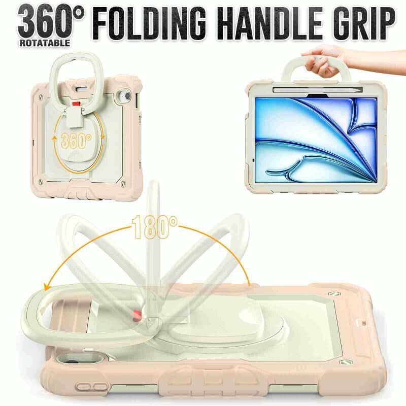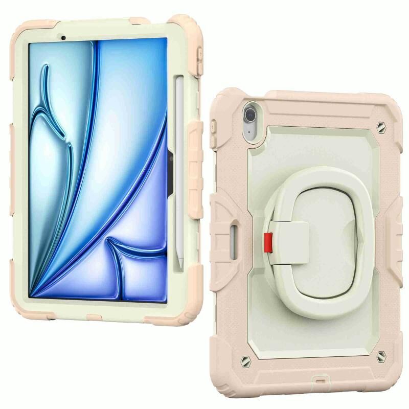 For iPad Air 11 2025 / 2024 Handle Silicone Hydric PC Tablet Case with Shoulder Strap(Rose Gold)