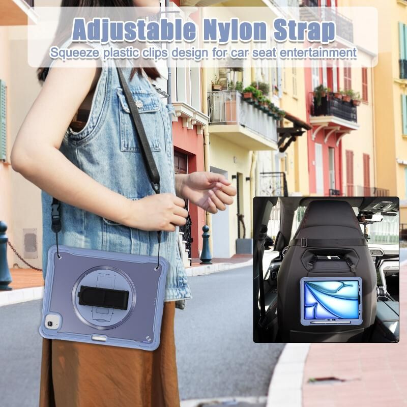 Θήκη Ταμπλέτας Υβριδική Βαρέως Τύπου για iPad Air 11 2025 / 2024 με Λαβή Χεριού & Λουρί (Λεβάντα Γκρι)