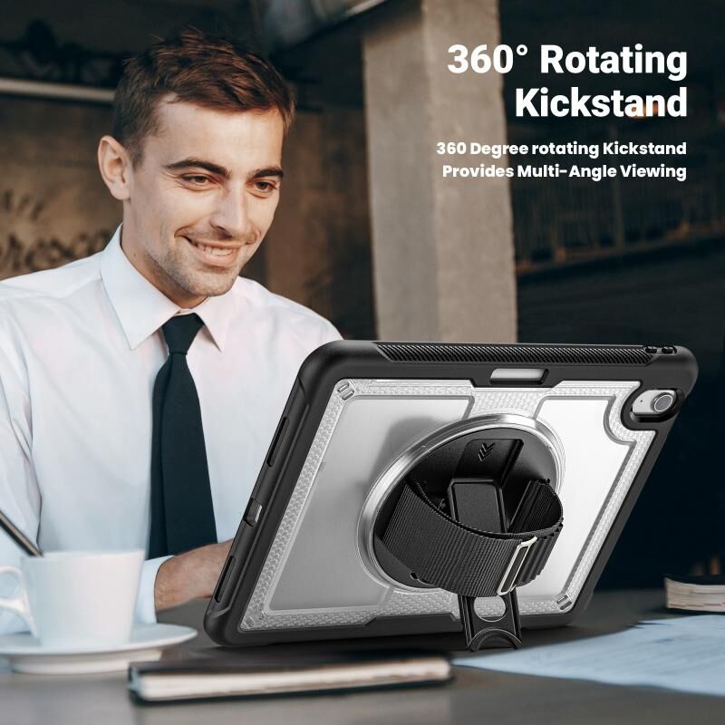 For iPad Air 11 2025 / 2024 Honeycomb Hand Grip Turntable Stand Tablet Case(Transparent)