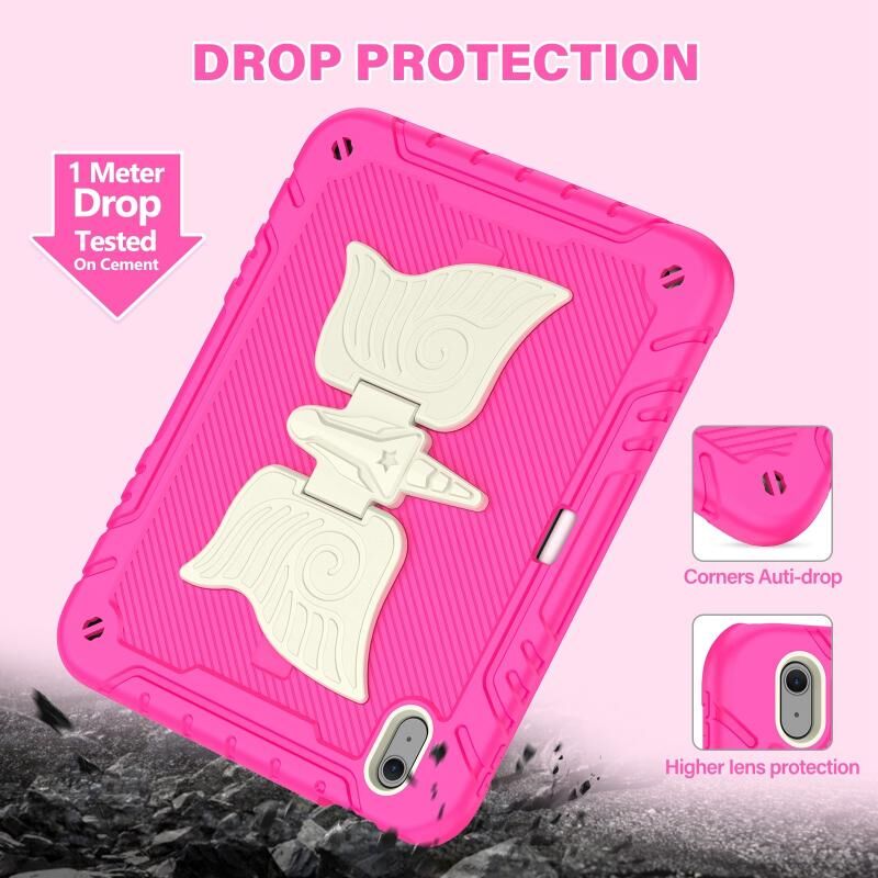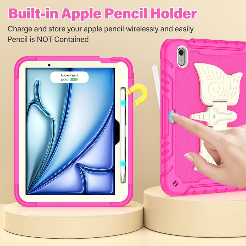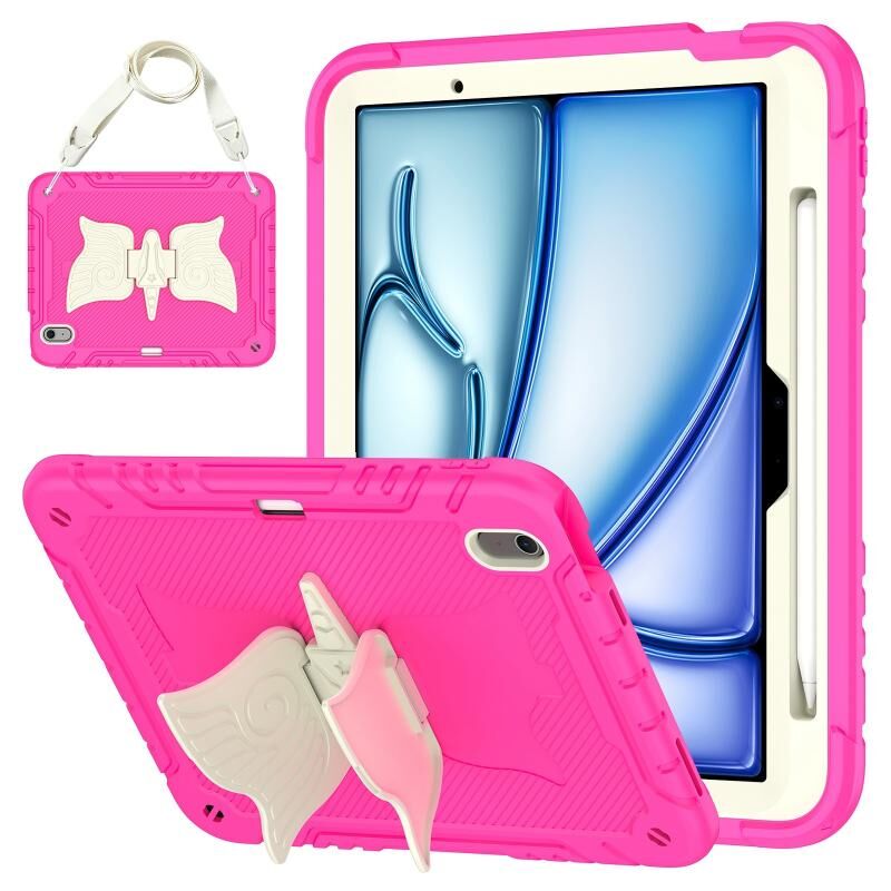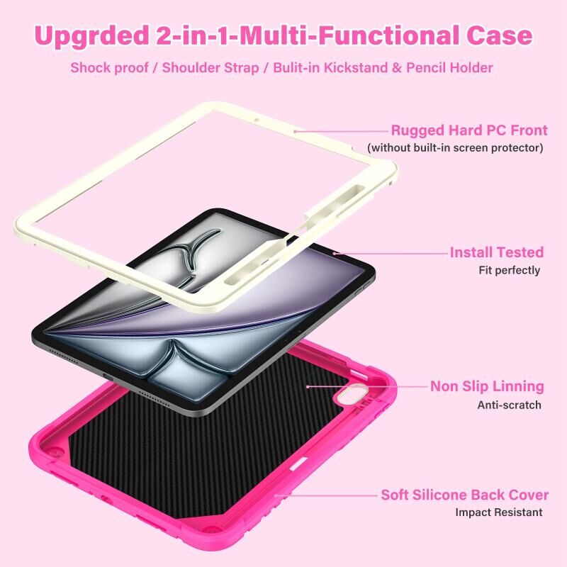 For iPad Air 11 2025 / 2024 Kickstand PC Hybrid Silicone Tablet Case with Strap(Beige Rose Red)