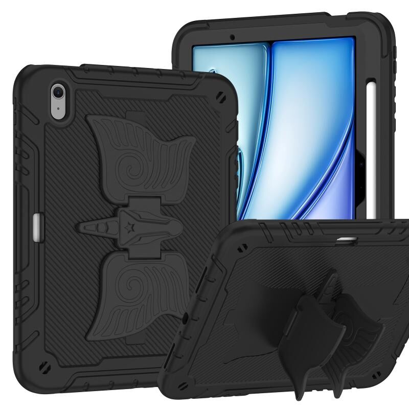 For iPad Air 11 2025 / 2024 Kickstand PC Hybrid Silicone Tablet Case with Strap(Black)