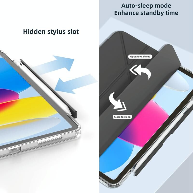 3. Λειτουργία αυτόματου ύπνου/αφύπνισης: Το έξυπνο κάλυμμα υποστηρίζει τη λειτουργία αυτόματης αφύπνισης/αναστολής λειτουργίας για να εξοικονομήσετε πολλή ενέργεια και να παρατείνετε τη διάρκεια ζωής του tablet σας.