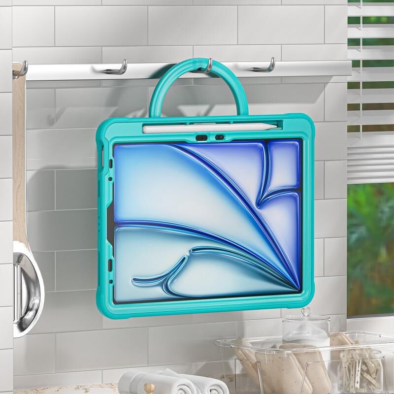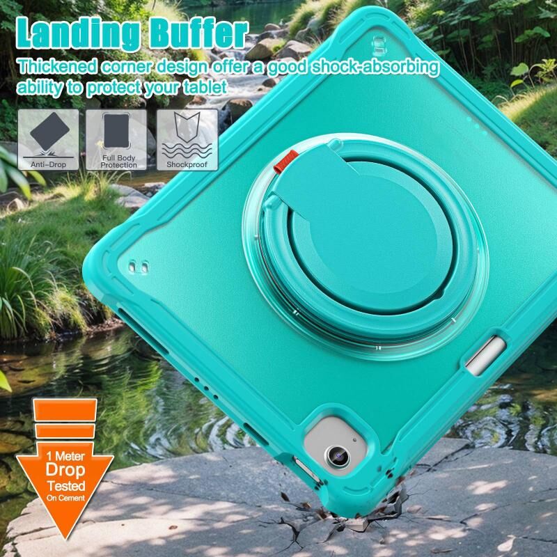 For iPad Air 11 2025 / 2024 Powerful Sailor Ring Holder Heavy Duty Hybrid Tablet Case with Strap(Light Blue)