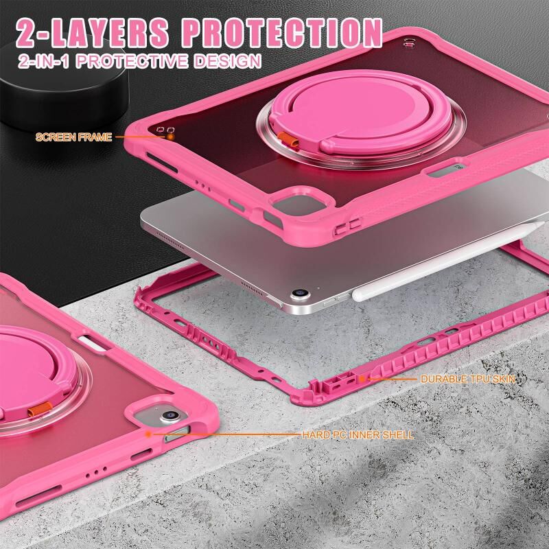 3. Adjustable Shoulder Strap: Adjustable shoulder grip can be slanted and release your hands completely. This function is perfect for traveling, restaurant ordering, home product introduction, engineer outdoor operation, teacher, etc. Also, the strap allows you to hang up your tablet behind car seat for entertainment for kids.