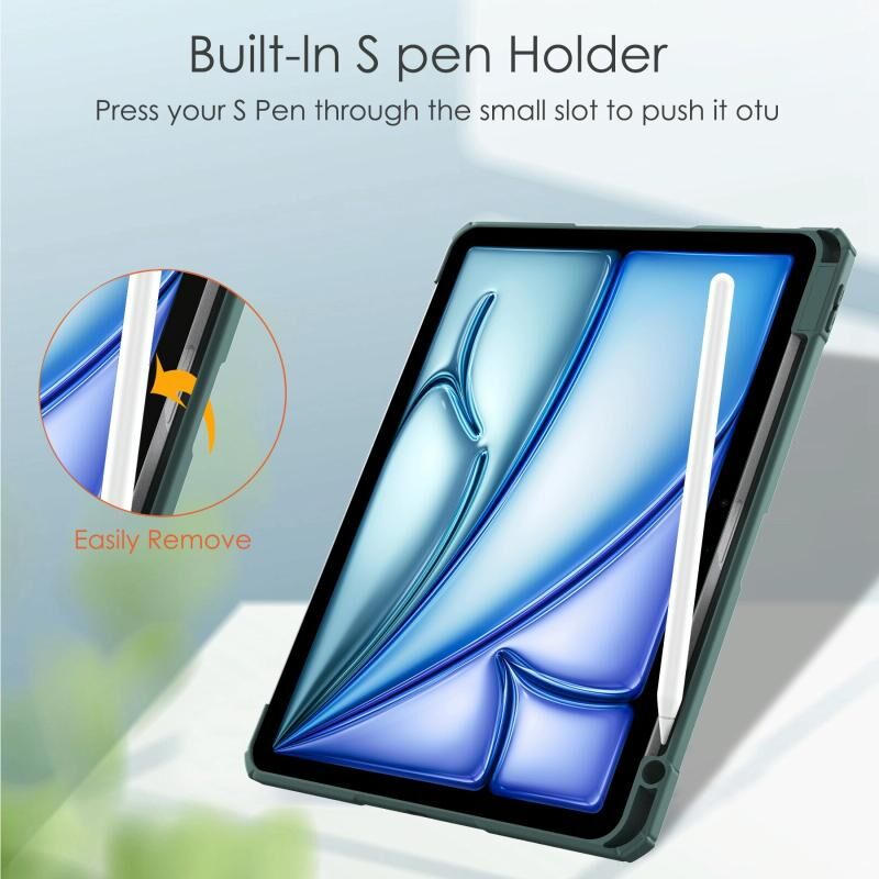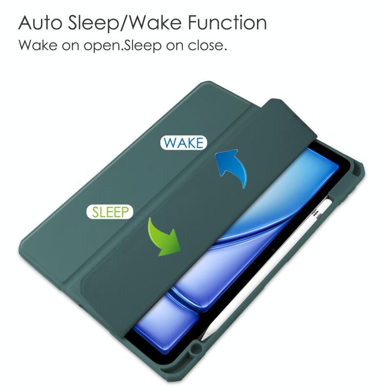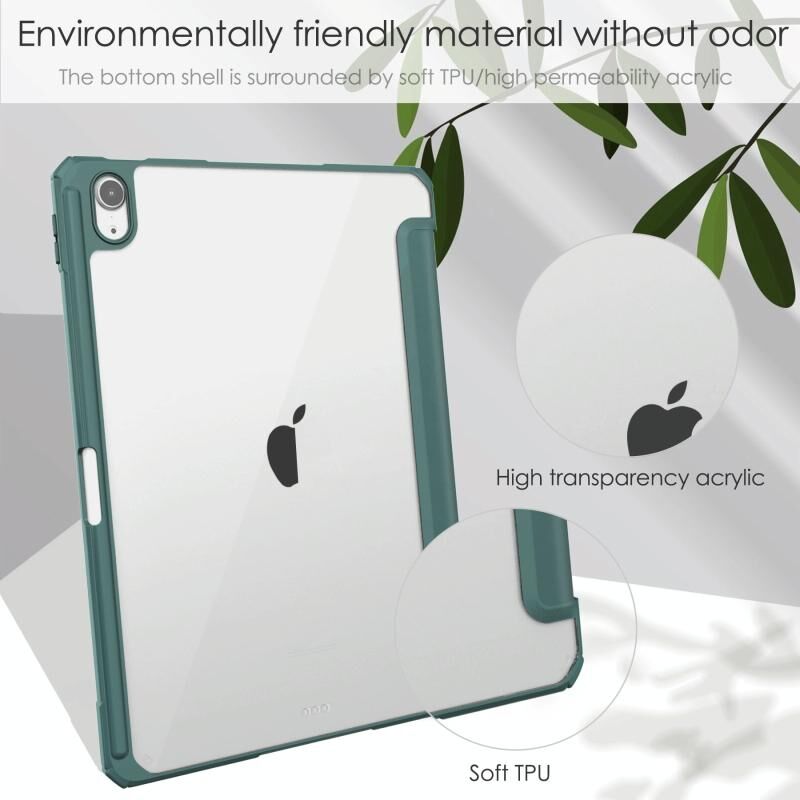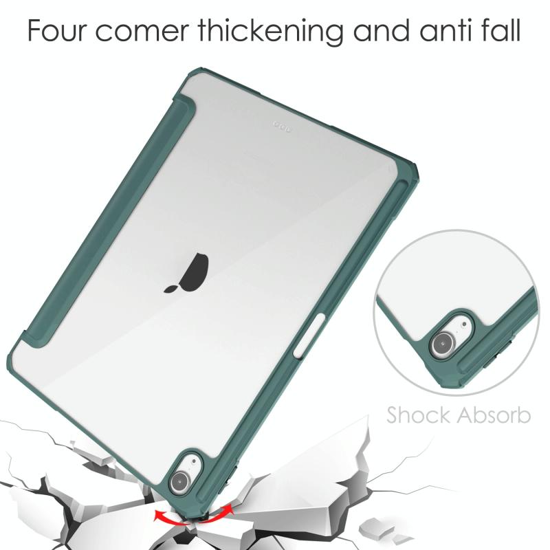 For iPad Air 11 2025 / 2024 Pure Color 3-fold Clear TPU Smart Leather Tablet Case(Dark Green)