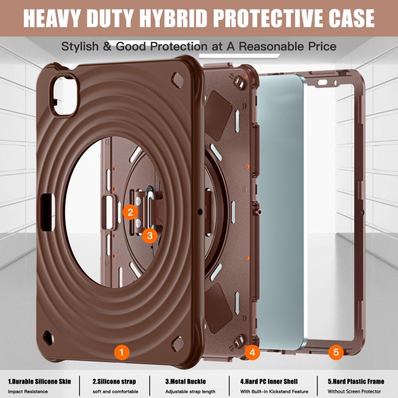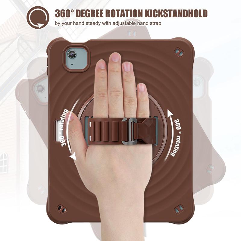 For iPad Air 11 2025 / 2024 Rotation Holder Silicone Hybrid PC Tablet Case(Chocolate)