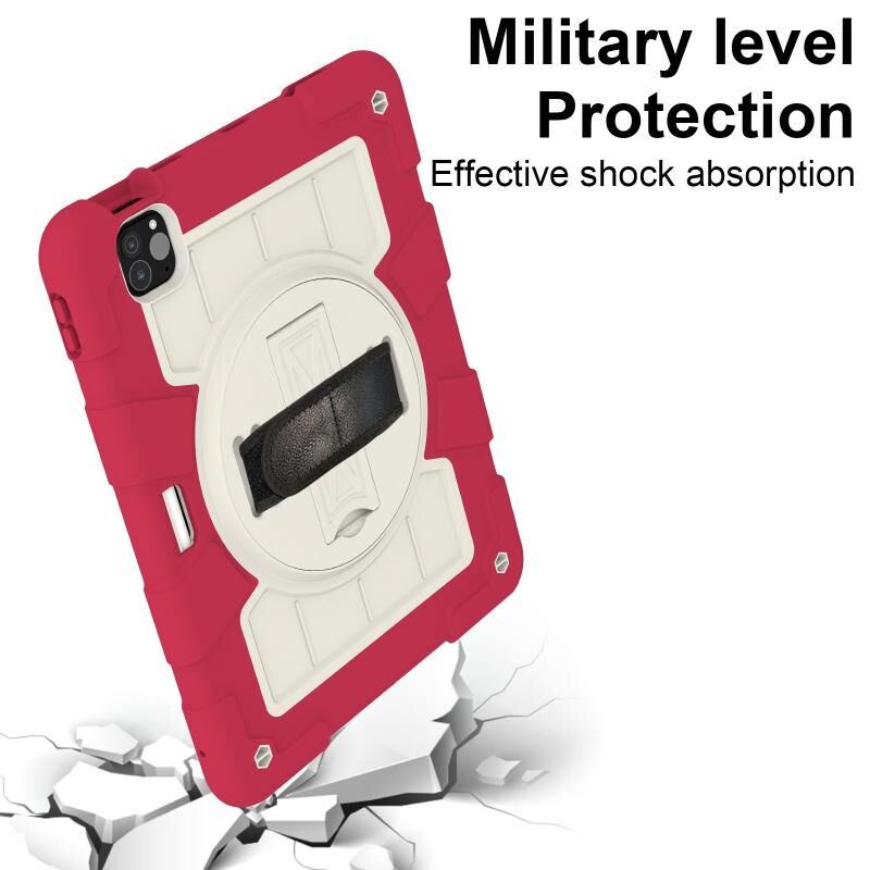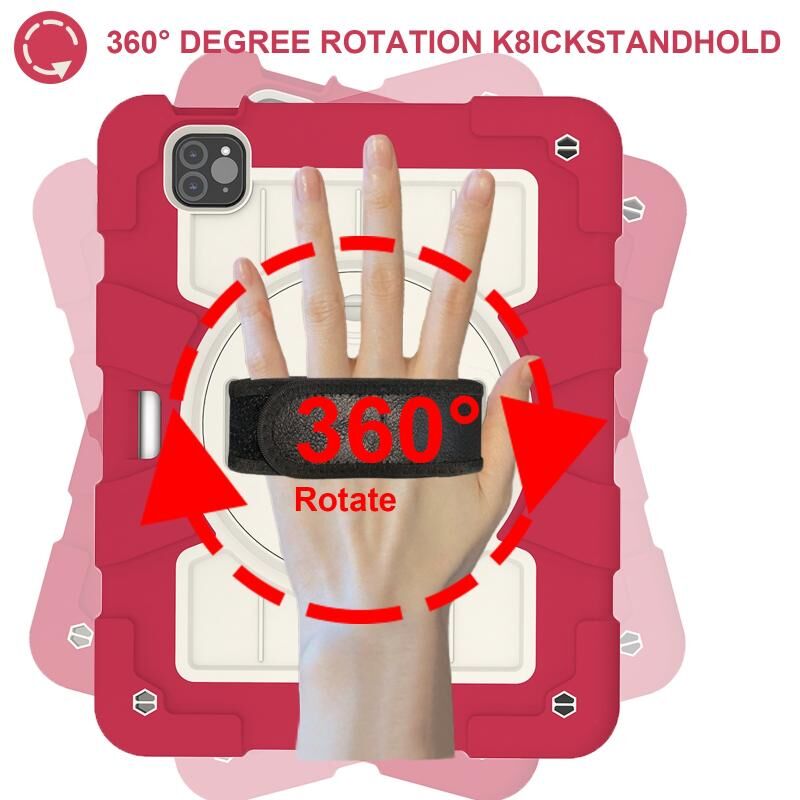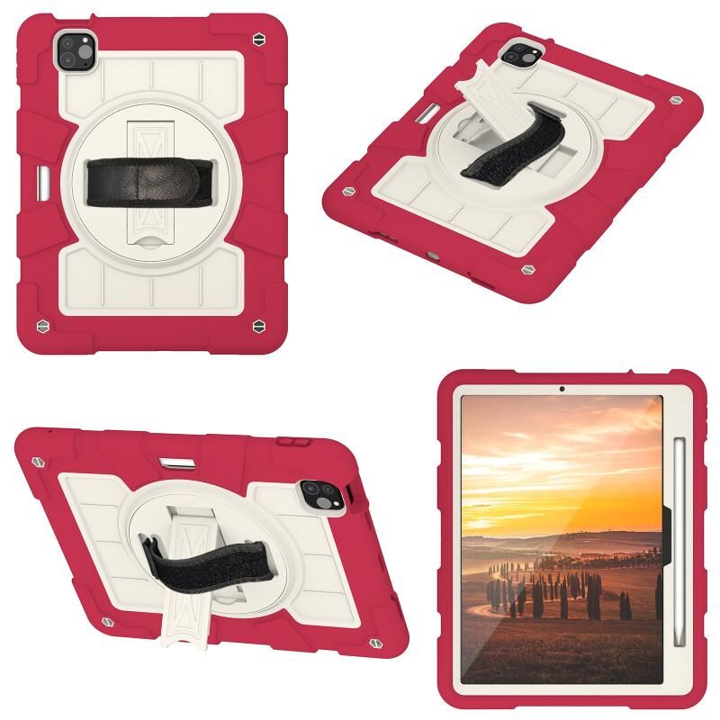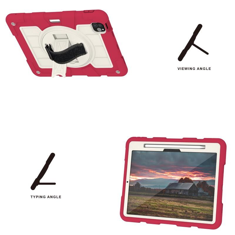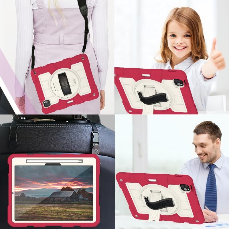 For iPad Air 11 2025 / 2024 Silicone Hybrid PC Shockproof Tablet Case with Shoulder Strap(Feifan Magenta)