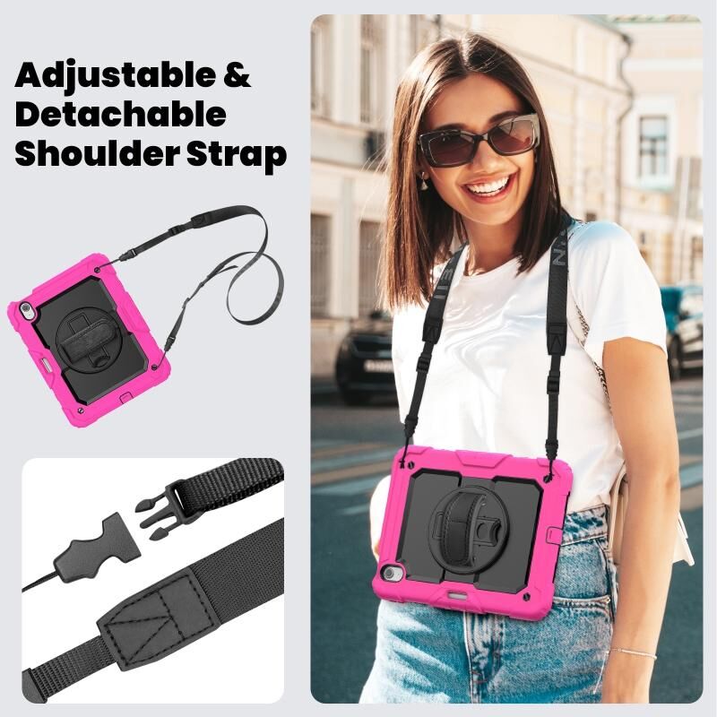 Για iPad Air 11 2025 / 2024 Υβριδική θήκη tablet PC σιλικόνης με λουράκι ώμου (Μαύρο + Rose Red)