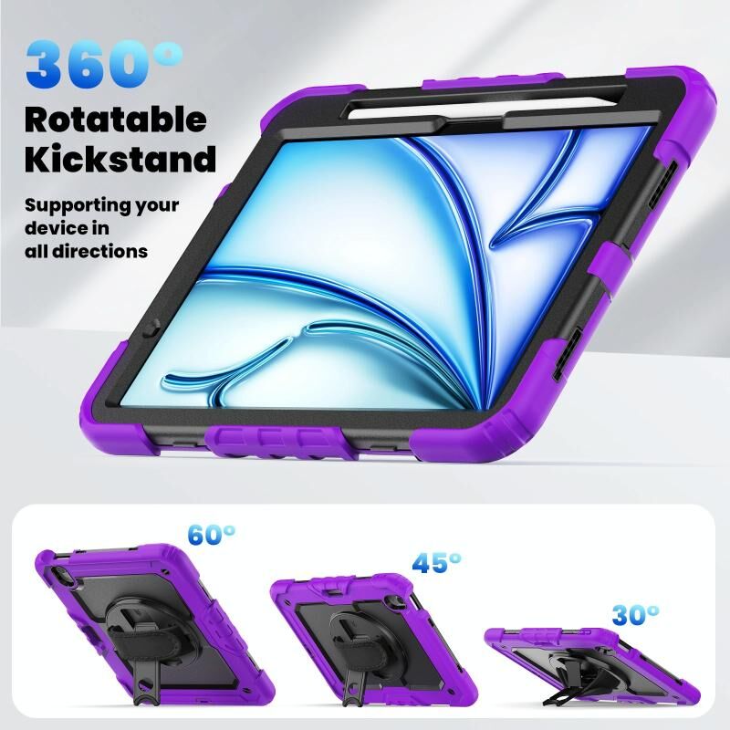 Για iPad Air 11 2025 / 2024 Υβριδική θήκη tablet PC σιλικόνης με λουράκι ώμου (μωβ)