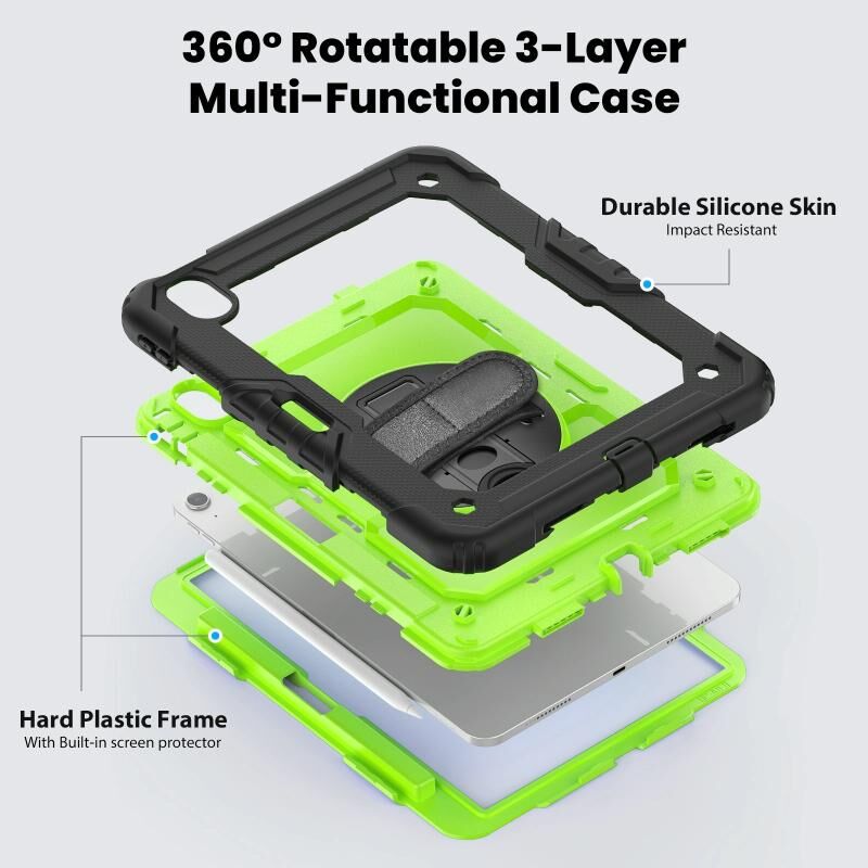 Για iPad Air 11 2025 / 2024 Υβριδική θήκη tablet PC σιλικόνης με λουράκι ώμου (κίτρινο πράσινο + μαύρο)