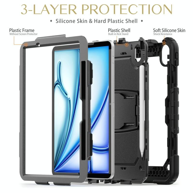 Θήκη tablet από σιλικόνη και PC για iPad Air 11 2025 / 2024 με λουρί ώμου & βάση (Πορτοκαλί)