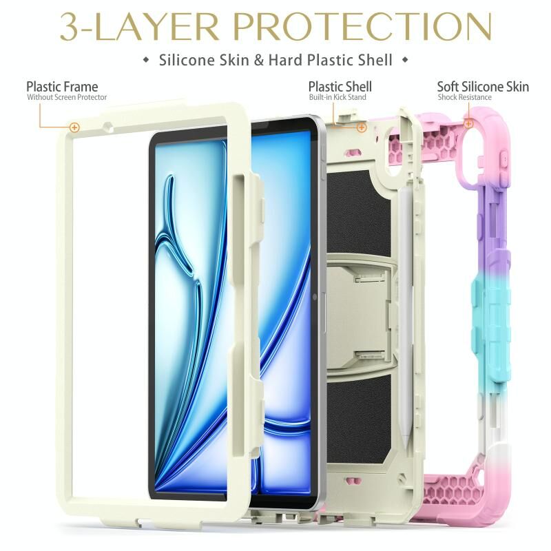 Θήκη tablet από σιλικόνη και PC για iPad Air 11 2025 / 2024 με λουρί ώμου & βάση (Πορτοκαλί)