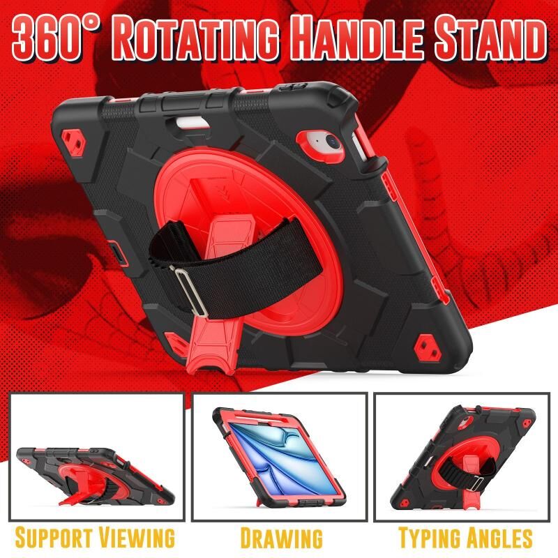 For iPad Air 11 2025 / 2024 Spider Hand Grip Turntable Stand Tablet Case(Black Red)
