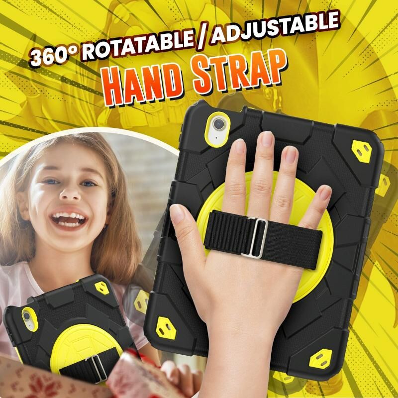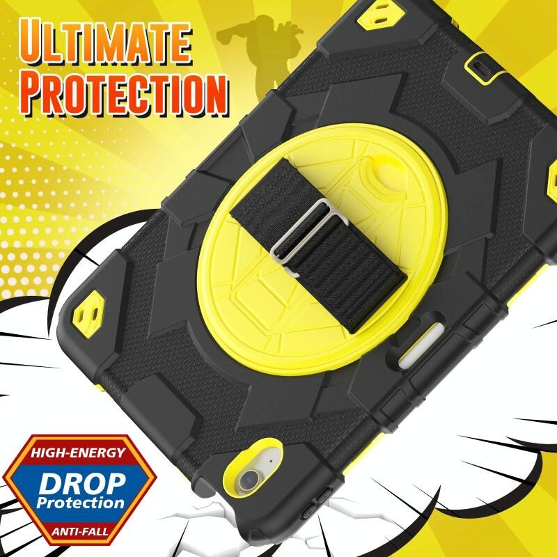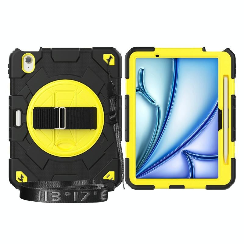 For iPad Air 11 2025 / 2024 Spider Hand Grip Turntable Stand Tablet Case(Black Yellow)