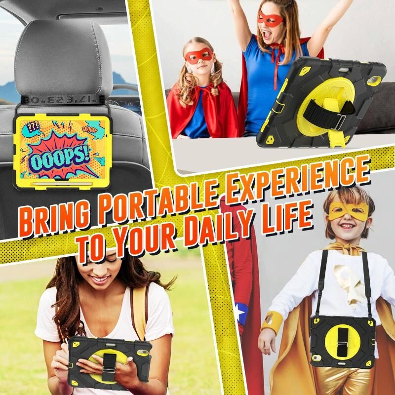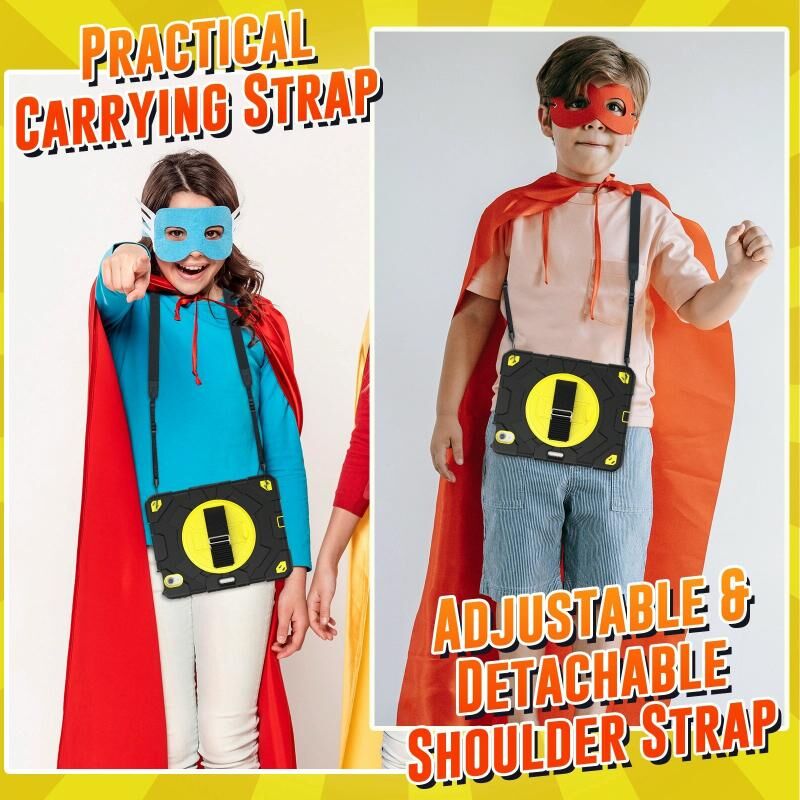 6. Detachable Shoulder Strap: The adjustable hand strap provides easy and comfortable grip, a must-have feature when you are presenting your tablet to others. The detachable and adjustable shoulder strap can help you carry your tablet more safely while hiking, traveling and other outdoor activities. This can also be used to secure your tablet to the car seat.
