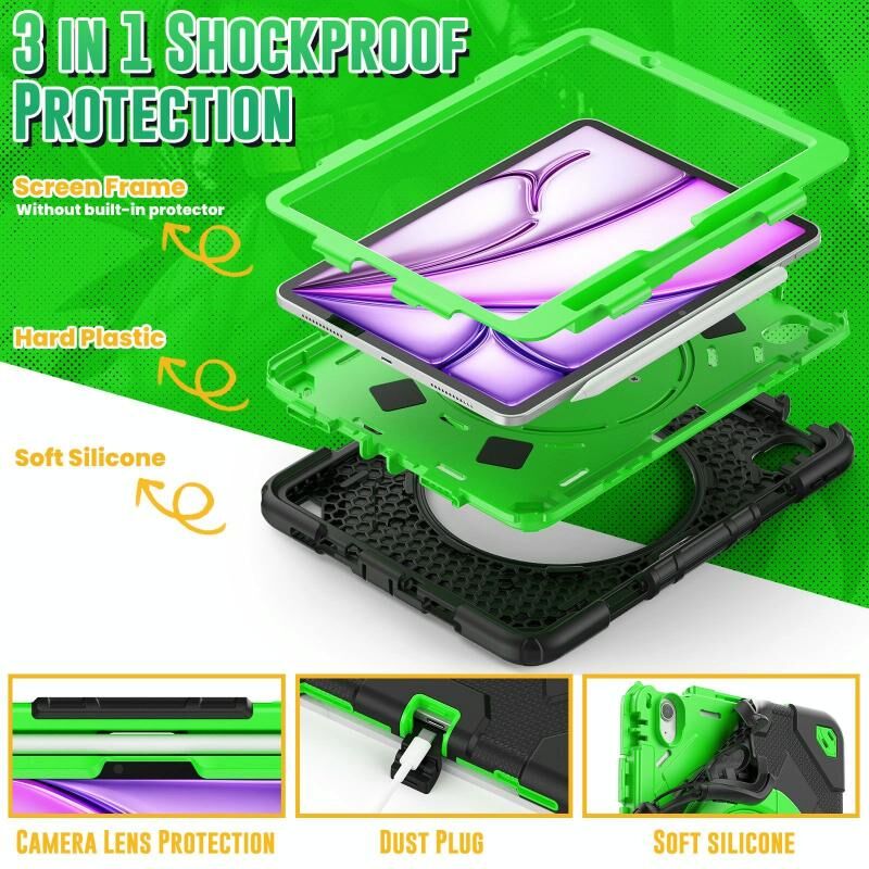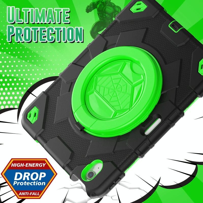 For iPad Air 11 2025 / 2024 Spider Rotation Handle Silicone Hybrid PC Tablet Case(Black Green)