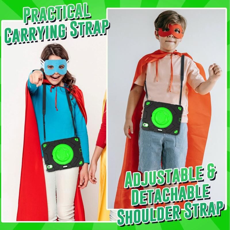 6. Detachable Shoulder Strap: The adjustable hand strap provides easy and comfortable grip, a must-have feature when you are presenting your tablet to others. The detachable and adjustable shoulder strap can help you carry your tablet more safely while hiking, traveling and other outdoor activities. This can also be used to secure your tablet to the car seat.