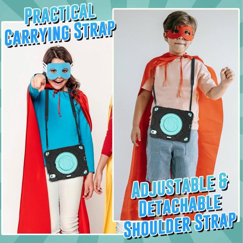 6. Detachable Shoulder Strap: The adjustable hand strap provides easy and comfortable grip, a must-have feature when you are presenting your tablet to others. The detachable and adjustable shoulder strap can help you carry your tablet more safely while hiking, traveling and other outdoor activities. This can also be used to secure your tablet to the car seat.