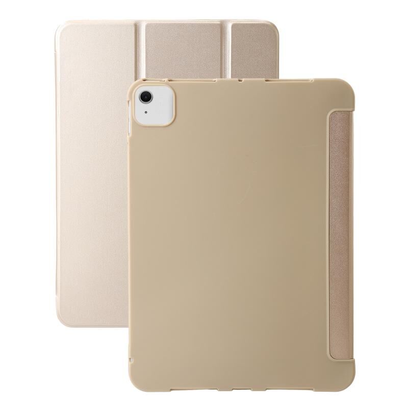 For iPad Air 11 2025 / 2024 Three-fold Holder Flip Tablet Leather Case(Gold)